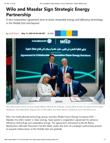 5/13/25, 2:19 PM                       Wilo and Masdar Sign Strategic Energy Partnership - Utilities Middle East