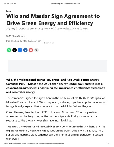 https://www.sustainabilitymenews.com/energy/masdar-completes-acquisition-of-valle-solar                       1/2