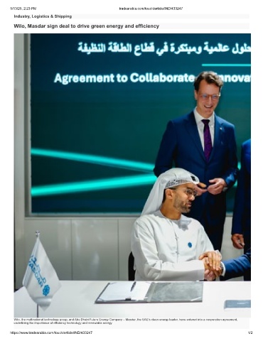 Wilo, the multinational technology group, and Abu Dhabi Future Energy Company – Masdar, the UAE’s clean energy leader, have entered into a cooperation agreement,