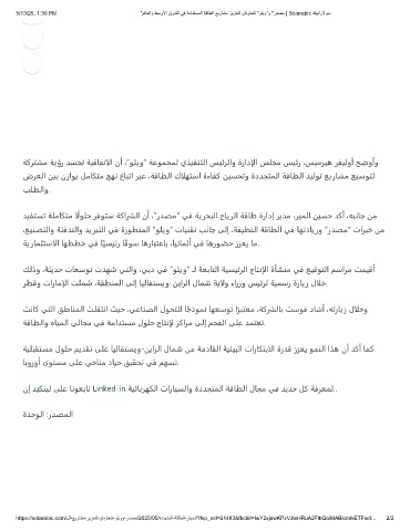 5/13/25, 1:39 PM "مﻟﺎﻌﻟاو طﺳوﻷا قرﺷﻟا ﻲﻓ ﺔﻣادﺗﺳﻣﻟا ﺔﻗﺎطﻟا ﻊﯾرﺎﺷﻣ زﯾزﻌﺗﻟ نﺎﻧوﺎﻌﺗﺗ "وﻠﯾو"و "ردﺻﻣ | Solarabic كﯾﺑارﻻوﺳ