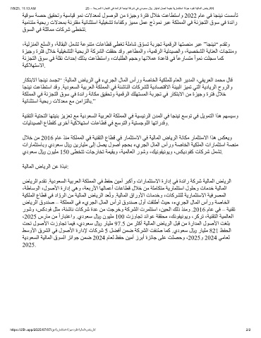7/8/25, 11:13 AM 25 – ﺔﻌﯾرﺳﻟا ةرﺎﺟﺗﻟا ﻲﻓ ةدﺋارﻟا ﺎﺟﻧﯾﻧ ﺔﻛرﺷ ﻲﻓ يدوﻌﺳ ﷼ رﺎﯾﻠﻣﻟ لﺻﺗ ﺔﻣﯾﻘﺑ ﺔﯾرﺎﻣﺛﺗﺳا ﺔﻟوﺟ دوﻘﺗ ﺔﯾﻟﺎﻣﻟا ضﺎﯾرﻟاH