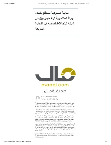 7/8/25, 11:12 AM                     ﺔﻌﯾرﺳﻟا ةرﺎﺟﺗﻟا ﻲﻓ ﺔﺻﺻﺧﺗﻣﻟا ﺎﺟﻧﯾﻧ ﺔﻛرﺷ ﻲﻓ ﷼ رﺎﯾﻠﻣ ﻎﻠﺑﺗ ﺔﯾرﺎﻣﺛﺗﺳا ﺔﻟوﺟ ةدﺎﯾﻘﺑ ﻊﻠطﺿﺗ ﺔﯾدوﻌﺳﻟا ﺔﯾﻟﺎﻣﻟا.