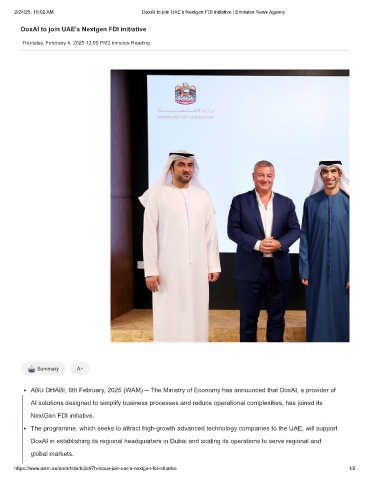 2/24/25, 10:02 AM DoxAI to join UAE’s Nextgen FDI initiative | Emirates News Agency