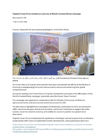 Fujairah Crown Prince briefed on outcome of World's Coolest Winter campaign