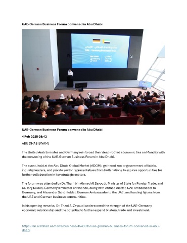 the convening of the UAE-German Business Forum in Abu Dhabi.