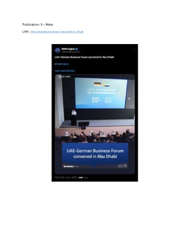 Publication: X – Wam Link: UAE-German Business Forum convened in Abu Dhabi