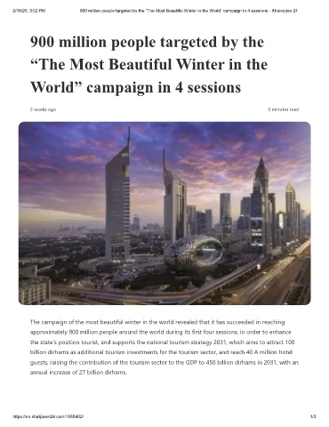 2/18/25, 3:52 PM 900 million people targeted by the “The Most Beautiful Winter in the World” campaign in 4 sessions - Khaleejion 24