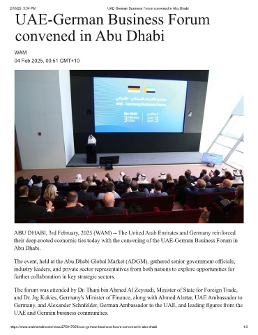 2/18/25, 3:34 PM UAE-German Business Forum convened in Abu Dhabi