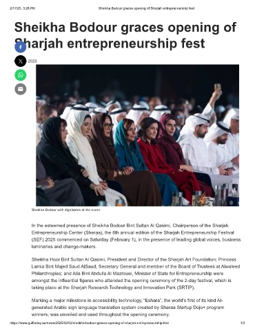 https://www.gulftoday.ae/news/2025/02/02/sheikha-bodour-graces-opening-of-sharjah-entrepreneurship-fest 1/3
