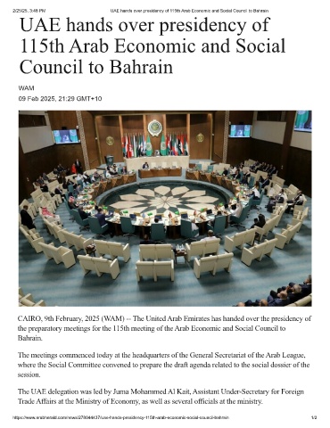 2/25/25, 3:48 PM UAE hands over presidency of 115th Arab Economic and Social Council to Bahrain