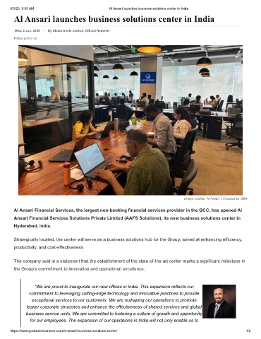 6/3/25, 9:05 AM Al Ansari launches business solutions center in India