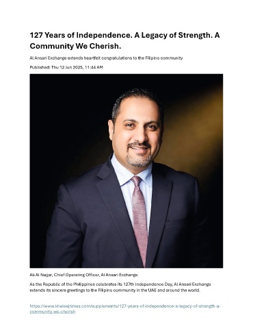 As the Republic of the Philippines celebrates its 127th Independence Day, Al Ansari Exchange
