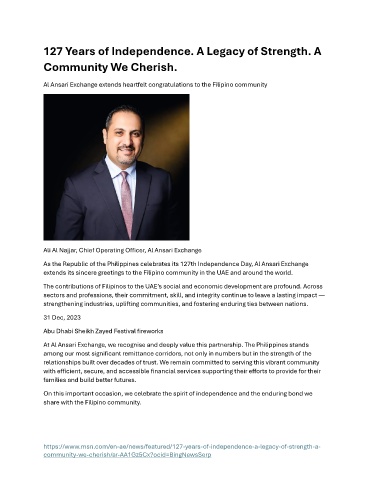 Al Ansari Exchange extends heartfelt congratulations to the Filipino community