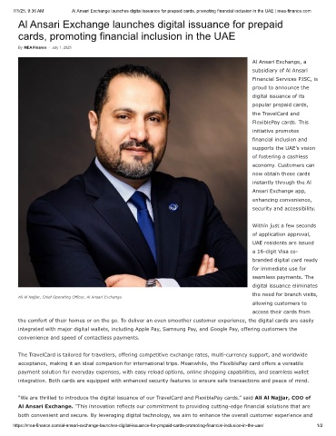 7/1/25, 9:36 AM      Al Ansari Exchange launches digital issuance for prepaid cards, promoting financial inclusion in the UAE | mea-finance.com