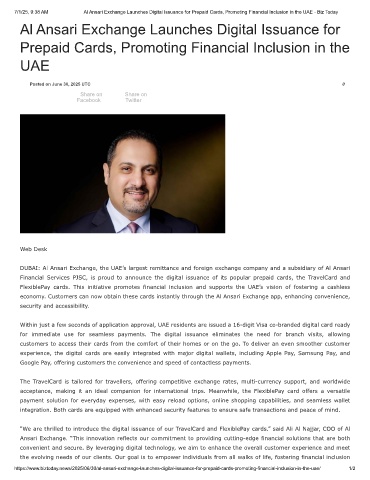 7/1/25, 9:38 AM        Al Ansari Exchange Launches Digital Issuance for Prepaid Cards, Promoting Financial Inclusion in the UAE - Biz Today