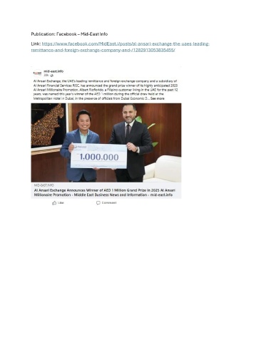 Publication: Facebook – Mid-East Info Link: https://www.facebook.com/MidEast.i/posts/al-ansari-exchange-the-uaes-leading- remittance-and-foreign-exchange-company-and-/1282913053835455/