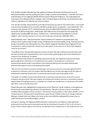 H.H. Sheikh Hamdan affirmed that the welfare of citizens will remain the foremost focus of