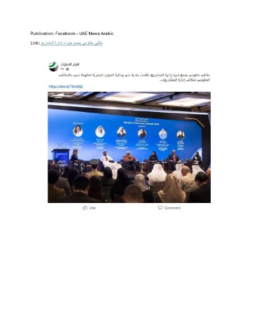 Publication: Facebook – UAE News Arabic Link: عيراشملا ةرادإ ءاربخ عمجي يموكح ىقتلم