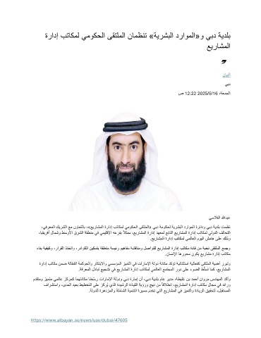 ،يفرعملا كيرشلا عم نواعتلاب ،»عيراشملا ةرادإ بتاكمل يموكحلا ىقتلملا« يبد ةموكحل ةيرشبلا دراوملا ةرئادو يبد ةيدلب تمظن