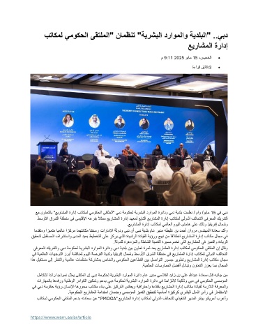 يفرعملا كيرشلاو يبد ةموكحل ةيرشبلا دراوملا ةرئادو يبد ةيدلب نيب نواعت ةرمث دعي عيراشملا ةرادإ بتاكمل يموكحلا ىقتلملا نإ لاقو