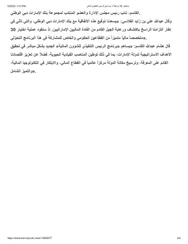 ﻲﻓ ﻲﺗﺄﺗ ﻲﺗﻟاو ،ﻲﻧطوﻟا ﻲﺑد تارﺎﻣﻹا كﻧﺑ ﻊﻣ ﺔﯾﻗﺎﻔﺗﻻا هذھ ﻊﯾﻗوﺗ ﺎﻧدﻌﺳﯾ» :ﻲﺳﻼﻔﻟا دﯾاز نﺑ ﻲﻠﻋ ﷲدﺑﻋ لﺎﻗو