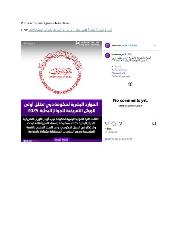 Publication: Instagram – Nas News Link: 2025 ةيثحبلا زئاوجلل ةيفيرعتلا شرولا ىلوأ قلطت يبد# ةموكحل ةيرشبلا دراوملا