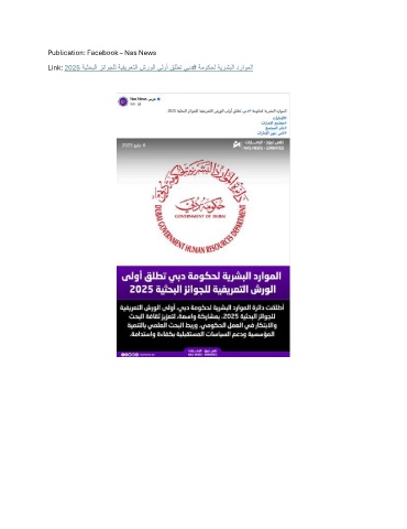 Publication: Facebook – Nas News Link: 2025 ةيثحبلا زئاوجلل ةيفيرعتلا شرولا ىلوأ قلطت يبد# ةموكحل ةيرشبلا دراوملا