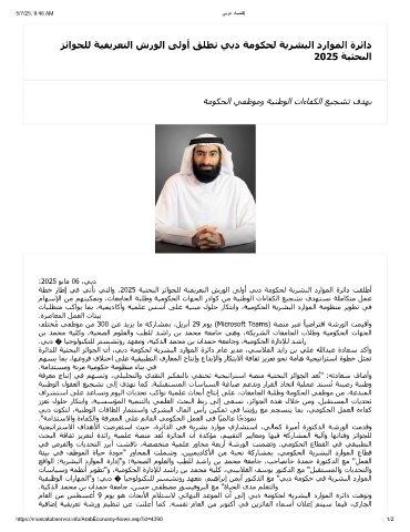 ﺔﻄﺧ رﺎطإ ﻲﻓ ﻲﺗﺄﺗ ﻲﺘﻟاو ،2025 ﺔﯿﺜﺤﺒﻟا ﺰﺋاﻮﺠﻠﻟ ﺔﯿﻔﻳﺮﻌﺘﻟا شرﻮﻟا ﻰﻟوأ ﻲﺑد ﺔﻣﻮﻜﺤﻟ ﺔﻳﺮﺸﺒﻟا دراﻮﻤﻟا ةﺮﺋاد ﺖﻘﻠطأ