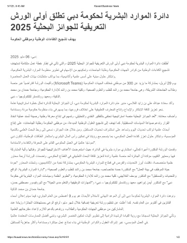 فدﮭﺗﺳﺗ ﺔﻠﻣﺎﻛﺗﻣ لﻣﻋ ﺔطﺧ رﺎطإ ﻲﻓ ﻲﺗﺄﺗ ﻲﺗﻟاو ،2025 ﺔﯾﺛﺣﺑﻟا زﺋاوﺟﻠﻟ ﺔﯾﻔﯾرﻌﺗﻟا شروﻟا ﻰﻟوأ ﻲﺑد ﺔﻣوﻛﺣﻟ ﺔﯾرﺷﺑﻟا دراوﻣﻟا ةرﺋاد تﻘﻠطأ