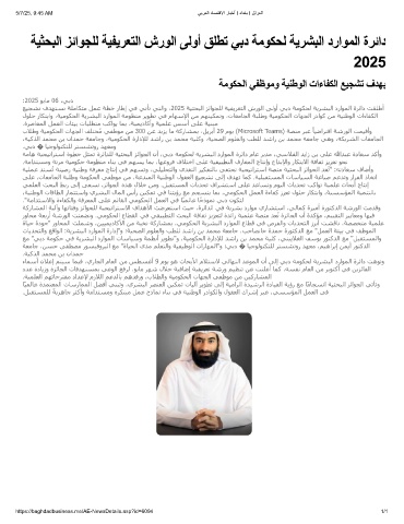 ﻊﯿﺠﺸﺗ فﺪﮫﺘﺴﺗ ﺔﻠﻣﺎﻜﺘﻣ ﻞﻤﻋ ﺔﻄﺧ رﺎطإ ﻲﻓ ﻲﺗﺄﺗ ﻲﺘﻟاو ،2025 ﺔﯿﺜﺤﺒﻟا ﺰﺋاﻮﺠﻠﻟ ﺔﯿﻔﻳﺮﻌﺘﻟا شرﻮﻟا ﻰﻟوأ ﻲﺑد ﺔﻣﻮﻜﺤﻟ ﺔﻳﺮﺸﺒﻟا دراﻮﻤﻟا ةﺮﺋاد ﺖﻘﻠطأ