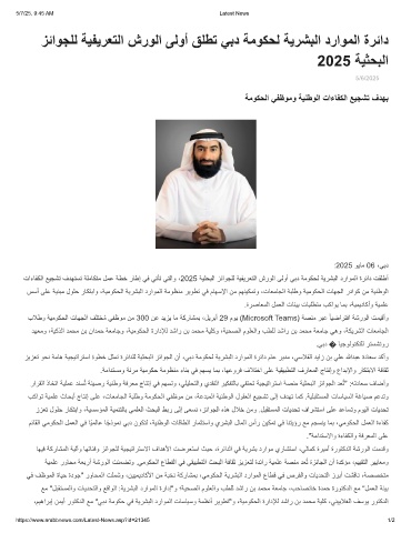 تاءﺎﻔﻛﻟا ﻊﯾﺟﺷﺗ فدﮭﺗﺳﺗ ﺔﻠﻣﺎﻛﺗﻣ لﻣﻋ ﺔطﺧ رﺎطإ ﻲﻓ ﻲﺗﺄﺗ ﻲﺗﻟاو ،2025 ﺔﯾﺛﺣﺑﻟا زﺋاوﺟﻠﻟ ﺔﯾﻔﯾرﻌﺗﻟا شروﻟا ﻰﻟوأ ﻲﺑد ﺔﻣوﻛﺣﻟ ﺔﯾرﺷﺑﻟا دراوﻣﻟا ةرﺋاد تﻘﻠطأ