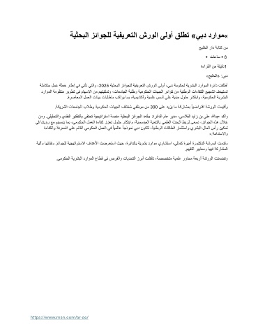 ةلماكتم لمع ةطخ راطإ يف يتأت يتلاو ، 2025 ةيثحبلا زئاوجلل ةيفيرعتلا شرولا ىلوأ ،يبد ةموكحل ةيرشبلا دراوملا ةرئاد تقلطأ