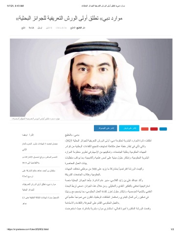 ،2025 ﺔﯿﺜﺤﺒﻟا ﺰﺋاﻮﺠﻠﻟ ﺔﯿﻔﯾﺮﻌﺘﻟا شرﻮﻟا ﻰﻟوأ ،ﻲﺑد ﺔﻣﻮﻜﺤﻟ ﺔﯾﺮﺸﺒﻟا دراﻮﻤﻟا ةﺮﺋاد ﺖﻘﻠطأ