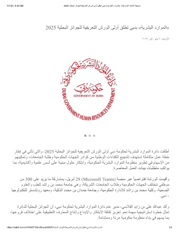 رﺎطإ ﻲﻓ ﻲﺗﺄﺗ ﻲﺘﻟاو ،2025 ﺔﯿﺜﺤﺒﻟا ﺰﺋاﻮﺠﻠﻟ ﺔﯿﻔﯾﺮﻌﺘﻟا شرﻮﻟا ﻰﻟوأ ﻲﺑد ﺔﻣﻮﻜﺤﻟ ﺔﯾﺮﺸﺒﻟا دراﻮﻤﻟا ةﺮﺋاد ﺖﻘﻠطأ