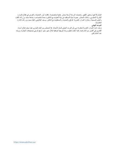 بطلل دشار نب دمحم ةعماج ،بحاصناخ ةدمح ةروتكدلا عم »لمعلا ةئيب يف فظوملا ةايح ةدوج« رواحملا تلمشو ،يموكحلا ةيرشبلا