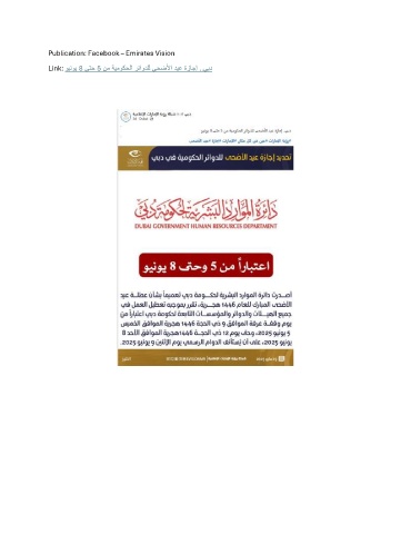 Publication: Facebook – Emirates Vision Link: وينوي 8 ىتح 5 نم ةيموكحلا رئاودلل ىحضلأا ديع ةزاجإ ..يبد
