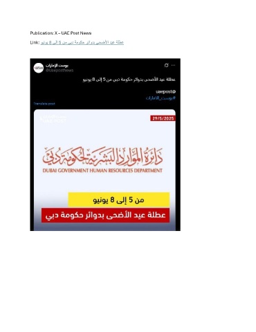 Publication: X – UAE Post News Link: وينوي 8 ىلإ 5 نم يبد ةموكح رئاودب ىحضلأا ديع ةلطع