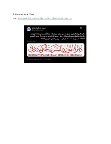 Publication: X – Al Watan Link: " ةيرجه 1446 ةنسل ىحضلأا ديع ةلطع نع نلعت "يبد ةموكحل ةيرشبلا دراوملا ةرئاد