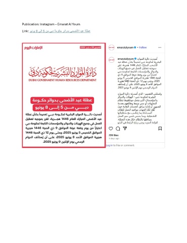 Publication: Instagram – Emarat Al Youm Link: وينوي 8 ىلإ 5 نم يبد ةموكح رئاودب ىحضلأا ديع ةلطع