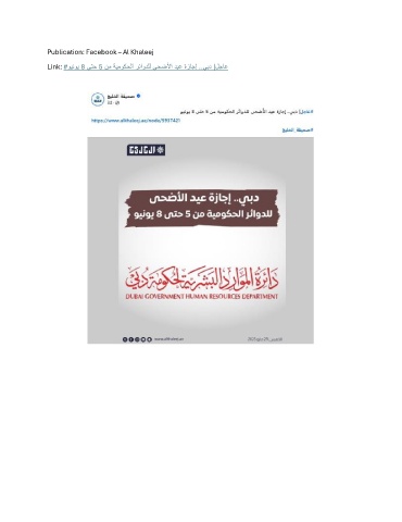 Publication: Facebook – Al Khaleej Link: # وينوي 8 ىتح 5 نم ةيموكحلا رئاودلل ىحضلأا ديع ةزاجإ ..يبد |لجاع