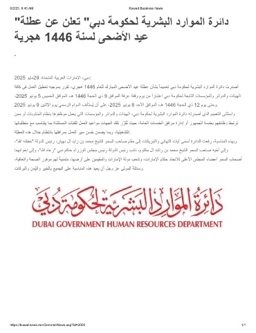 ﺔﻓﺎﻛ ﻲﻓ لﻣﻌﻟا لﯾطﻌﺗ ﮫﺑﺟوﻣﺑ ررﻘﺗ ،يرﺟھ 1446 مﺎﻌﻠﻟ كرﺎﺑﻣﻟا ﻰﺣﺿﻷا دﯾﻋ ﺔﻠطﻋ نﺄﺷﺑ ً ﺎﻣﯾﻣﻌﺗ ﻲﺑد ﺔﻣوﻛﺣﻟ ﺔﯾرﺷﺑﻟا دراوﻣﻟا ةرﺋاد تردﺻأ