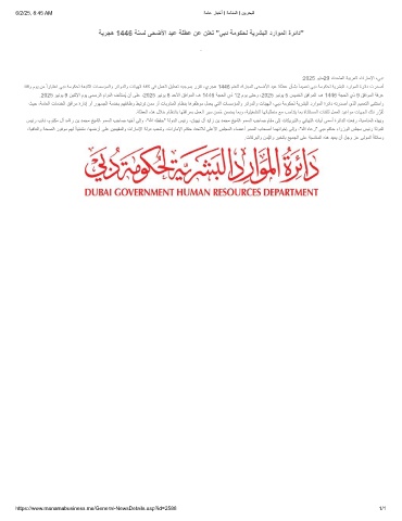 ﺔﯾرﺟھ 1446 ﺔﻧﺳﻟ ﻰﺣﺿﻷا دﯾﻋ ﺔﻠطﻋ نﻋ نﻠﻌﺗ "ﻲﺑد ﺔﻣوﻛﺣﻟ ﺔﯾرﺷﺑﻟا دراوﻣﻟا ةرﺋاد"