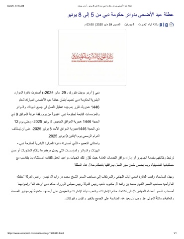 مﺎﻌﻠﻟ كرﺎﺑﻣﻟا ﻰﺣﺿﻷا دﯾﻋ ﺔﻠطﻋ نﺄﺷﺑ ً ﺎﻣﯾﻣﻌﺗ ﻲﺑد ﺔﻣوﻛﺣﻟ ﺔﯾرﺷﺑﻟا