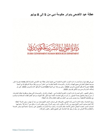 ررقت ،ةيرجه 1446 ماعلل كرابملا ىحضلأا ديع ةلطع نأشب ًاميمعت يبد ةموكحل ةيرشبلا دراوملا ةرئاد تردصأ /ماو /ويام 29 يف يبد