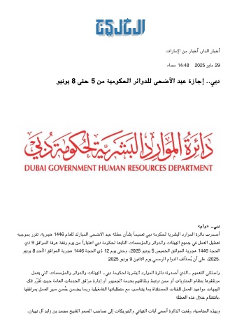 ﻪﺒﺟﻮﻤﺑ رﺮﻘﺗ ،ﺔﻳﺮﺠﻫ 1446 مﺎﻌﻠﻟ كرﺎﺒﻤﻟا ﺤﺿﻷا ﺪﻴﻋ ﺔﻠﻄﻋ نﺄﺸﺑ ًﺎﻤﻴﻤﻌﺗ ﺑد ﺔﻣﻮﺤﻟ ﺔﻳﺮﺸﺒﻟا دراﻮﻤﻟا ةﺮﺋاد ترﺪﺻأ