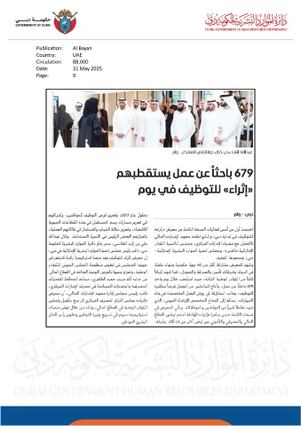 Publication: Al Bayan Country: UAE Circulation: 88,000 Date: 31 May 2025 Page: 9