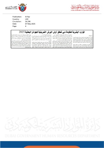 Publication: Al Fajr Country: UAE Circulation: 34,596 Date: 07 May 2025 Page: 4