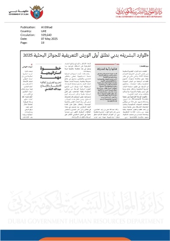 Publication: Al Etihad Country: UAE Circulation: 109,640 Date: 07 May 2025 Page: 19