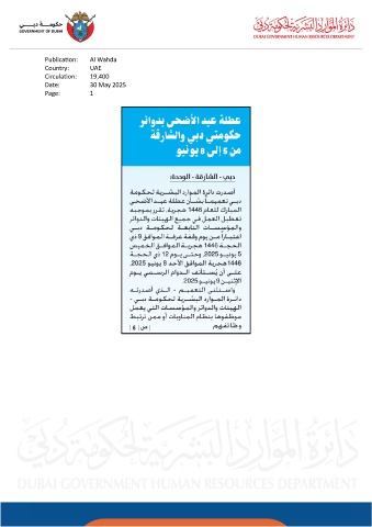 Publication: Al Wahda Country: UAE Circulation: 19,400 Date: 30 May 2025 Page: 1