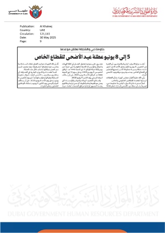 Publication: Al Khaleej Country: UAE Circulation: 121,141 Date: 30 May 2025 Page: 9